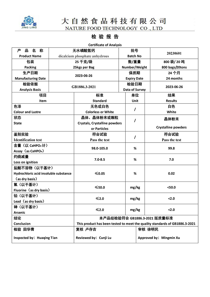 六、用途:在食品工業(yè)中作疏松劑、面團(tuán)改良劑、緩沖劑、營養(yǎng)增補(bǔ)劑、穩(wěn)定劑、乳化劑、穩(wěn)定劑等。如作面粉、蛋糕、糕點(diǎn)、烘焙制品的膨松劑,復(fù)配型面包改質(zhì)劑,油炸食品改良劑。亦用于餅干、奶粉、冷飲、冰激凌粉,作為營養(yǎng)增補(bǔ)劑或品質(zhì)改良劑。